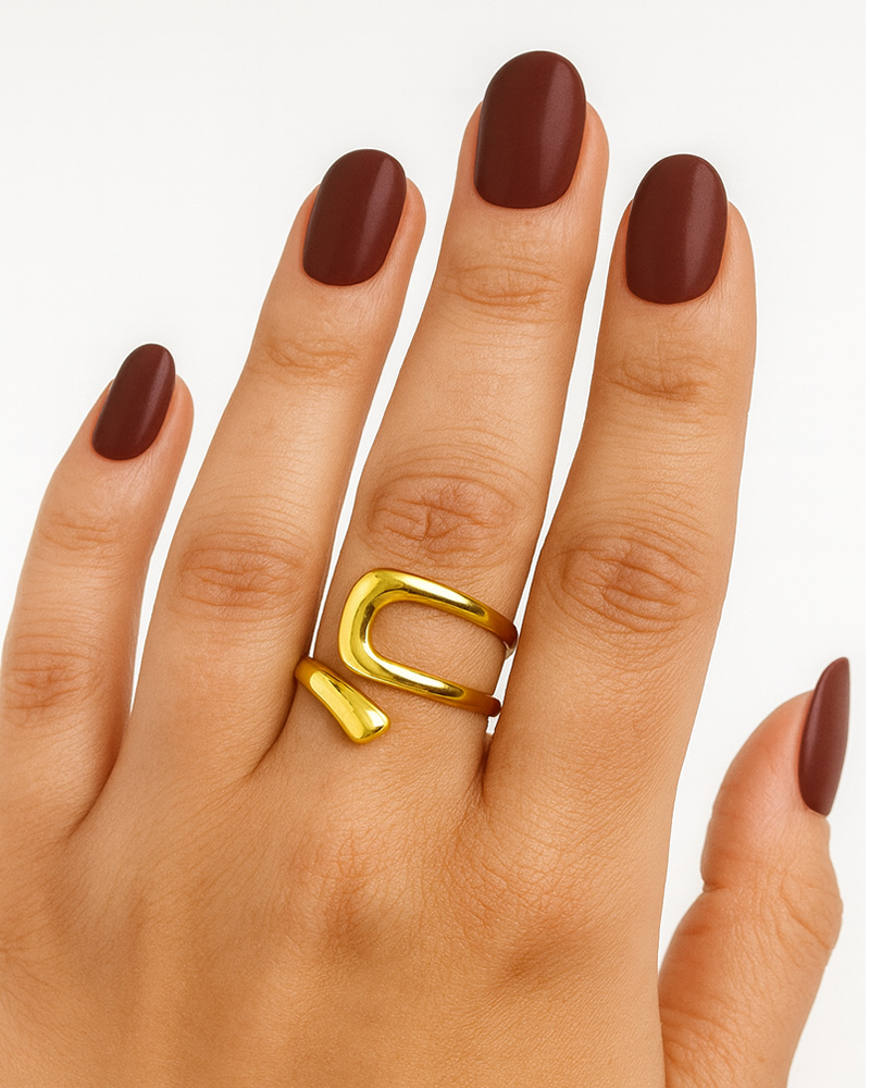 Crafted from stainless steel with 18K gold plating, this ring is hypoallergenic, tarnish-resistant, and water-resistant, making it a comfortable and low-maintenance piece for daily wear. The ring wraps smoothly around your finger for effortless elegance.