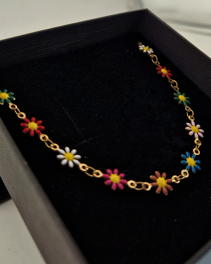 • Design: Dainty gold-tone chain with delicate enamel daisy links for a feminine touch
