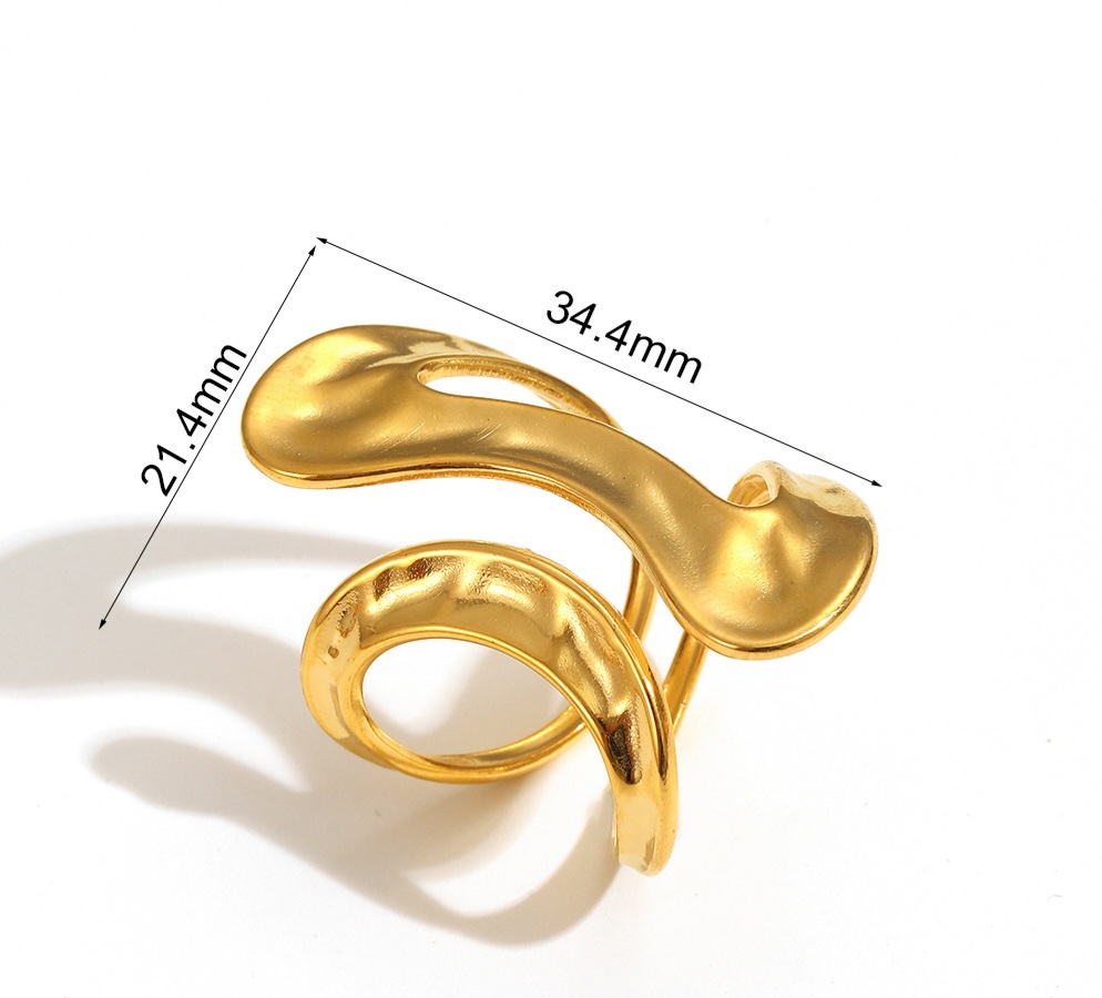 Made from high-quality stainless steel and finished with 18K gold plating, this ring is hypoallergenic, tarnish-resistant, and water-safe, making it ideal for everyday wear. The adjustable open design allows for a personalized fit on different fingers.