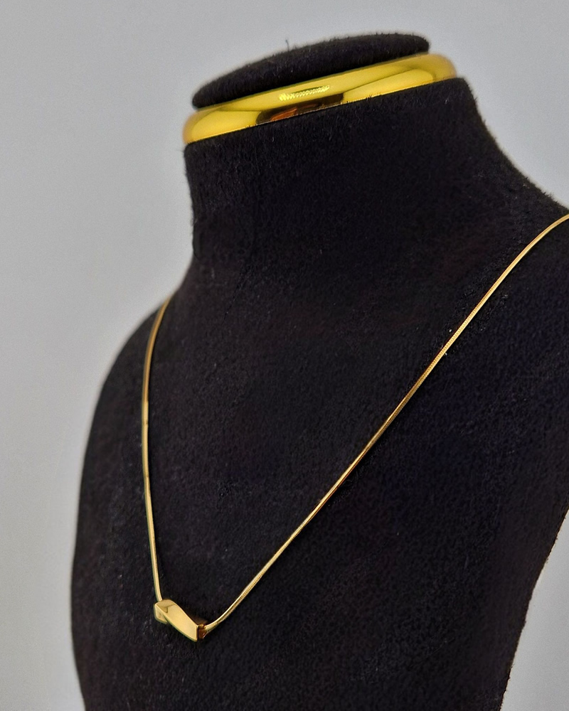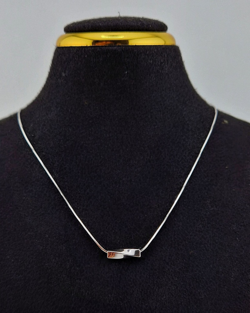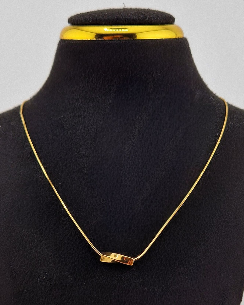 Expertly crafted from 925 sterling silver and luxuriously plated with 18K gold, this minimalist necklace features a delicately curved bar pendant that rests gently along the neckline. The sleek, fluid design reflects inner strength, serenity, and hope, making it not just an accessory, but a symbol of unwavering faith and grace.