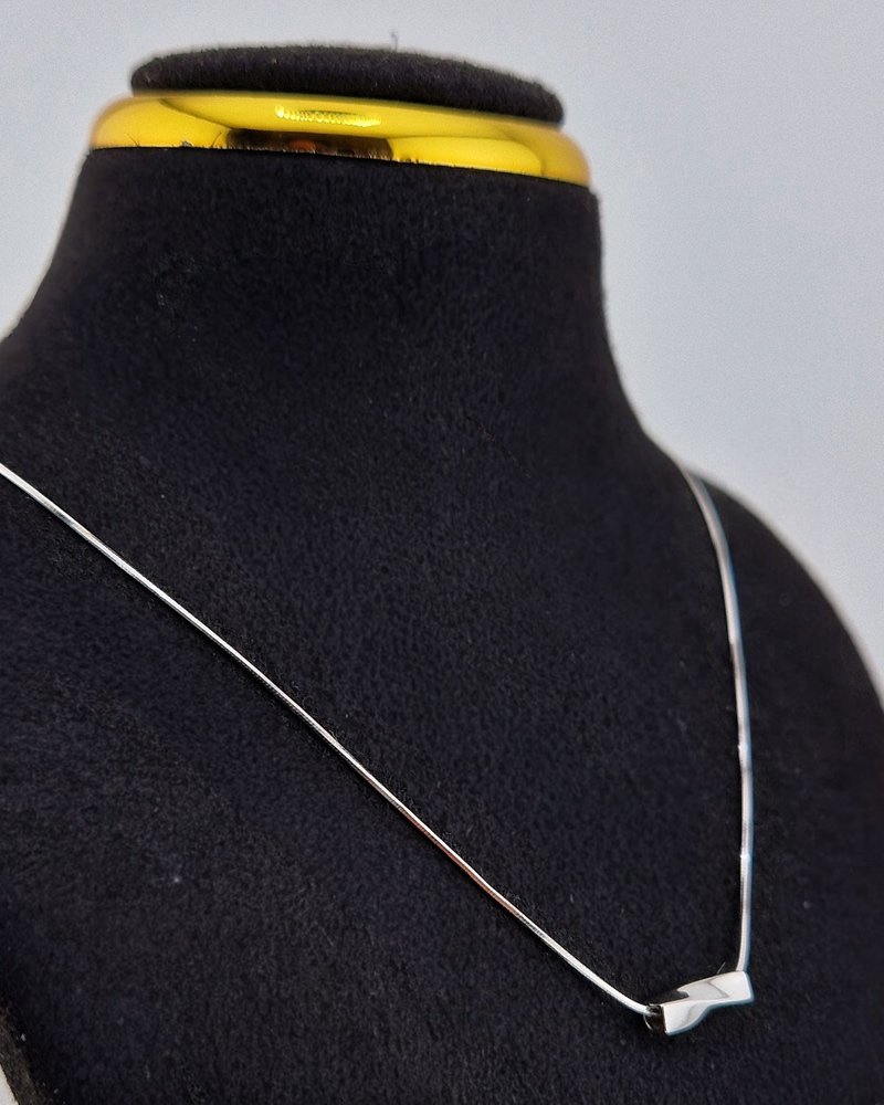 • Design: Minimalist curved bar pendant symbolising calm and faith.