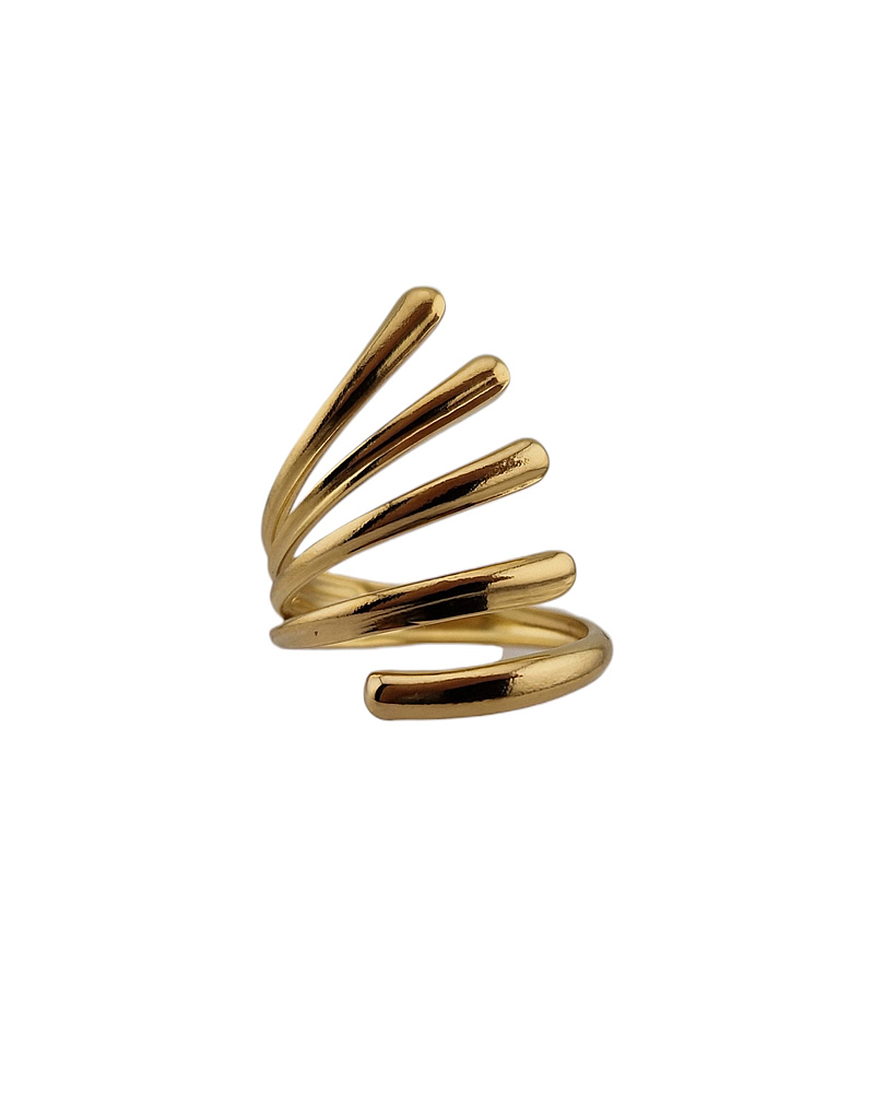 The design features multiple curved lines that rise and flow like ocean waves, giving the ring a sense of movement and modern artistry. Lightweight and comfortable, it makes a bold statement on its own but can also be styled alongside other minimalist rings for a layered look.