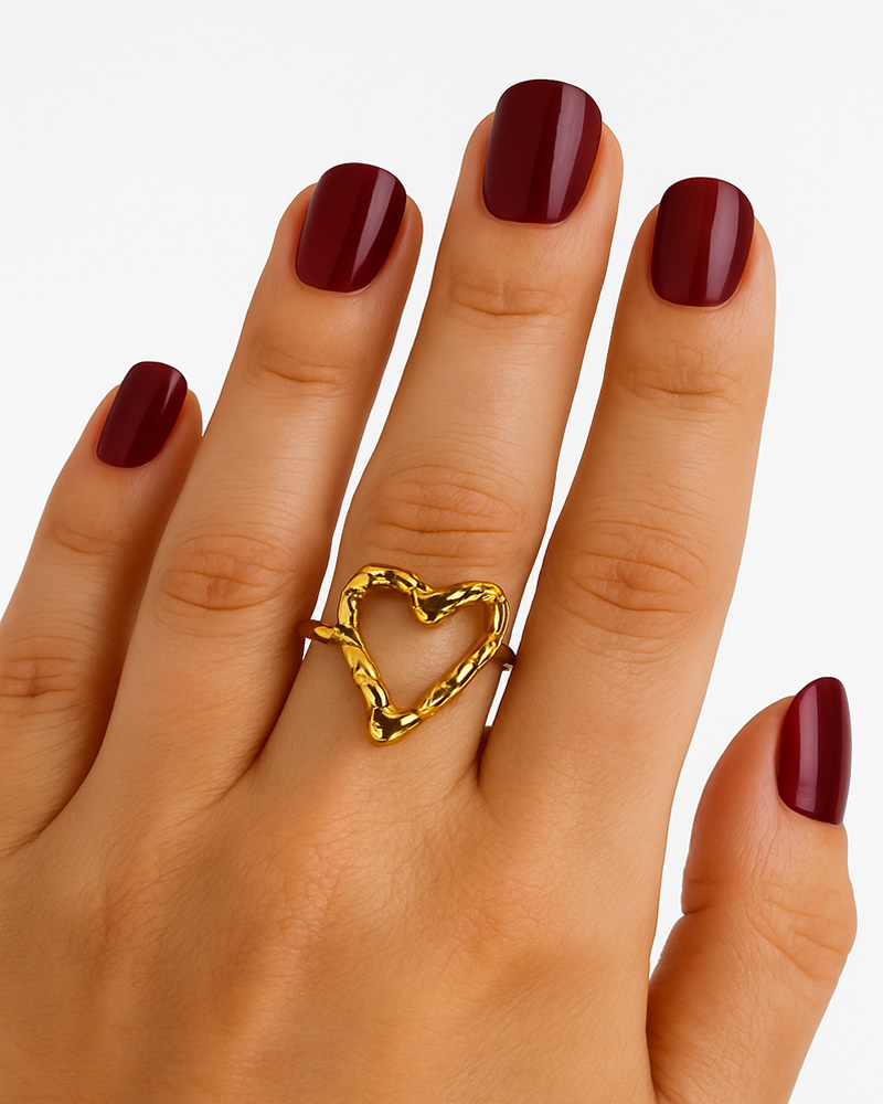 The Heart Shaped Ring is made from stainless steel with a gold plating. Designed with an adjustable open back design, it provides a comfortable fit while keeping its stylish heart shape at the front.