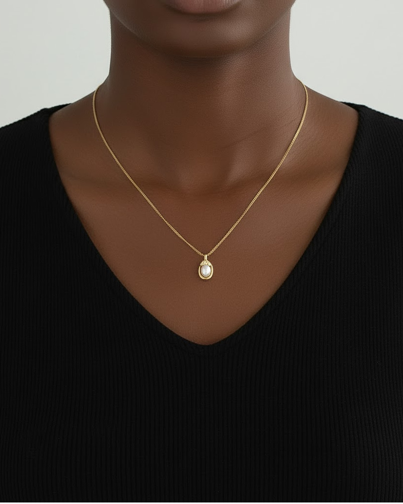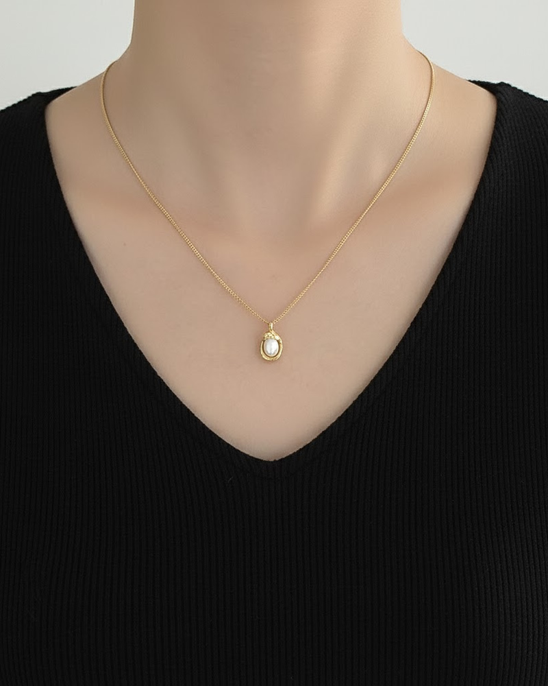 Home / Necklace / Luna Oval Pearl Pendant Necklace