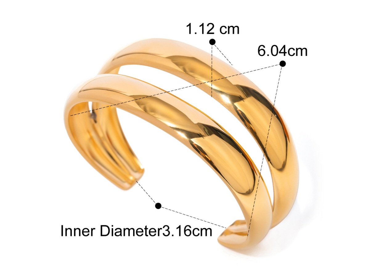 Design: 2 layered open cuff bracelet with rounded edges and bold curves