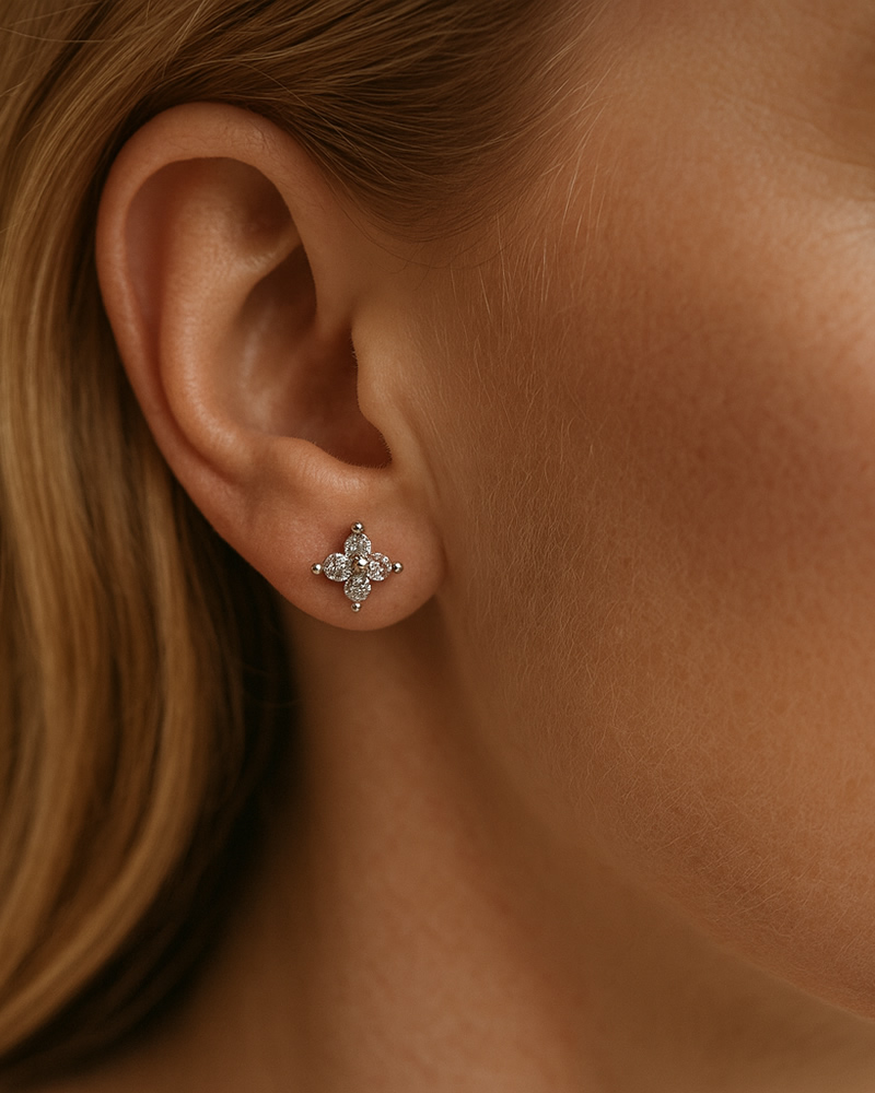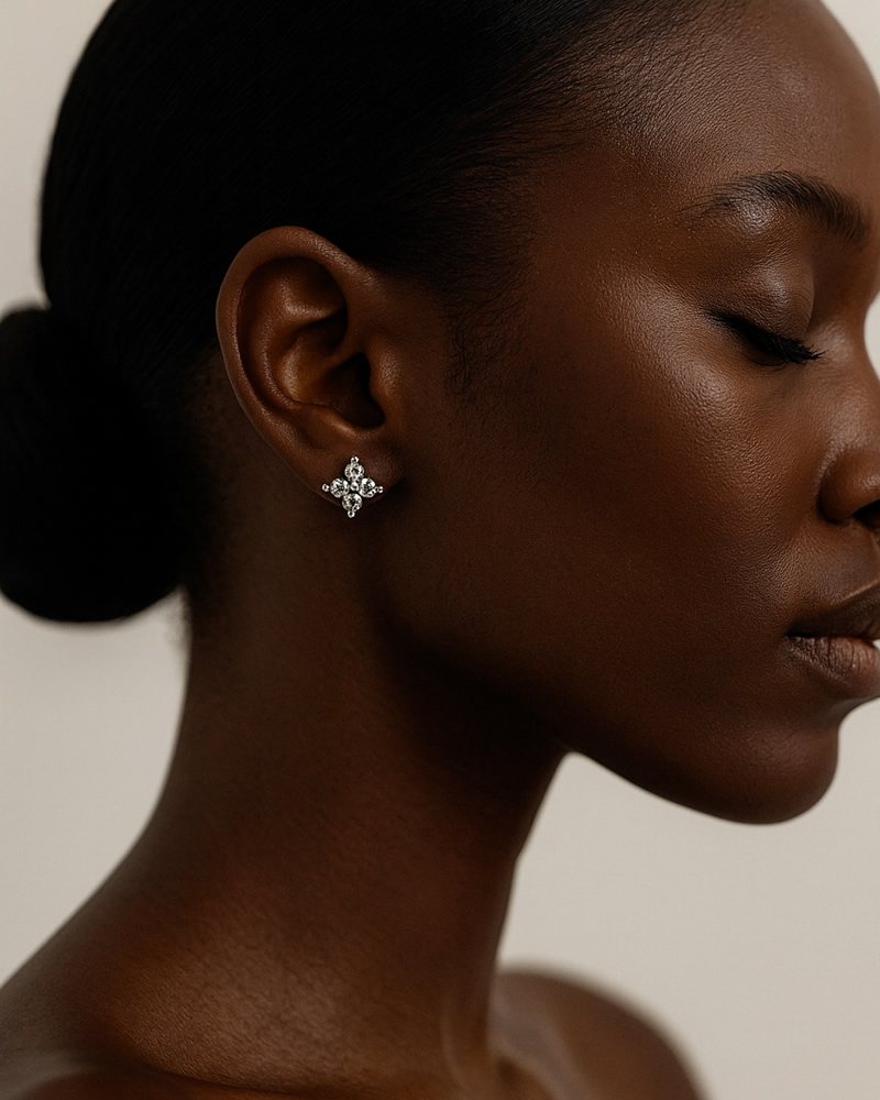 • Design: Floral cluster design featuring precision-cut moissanite stones for brilliant sparkle