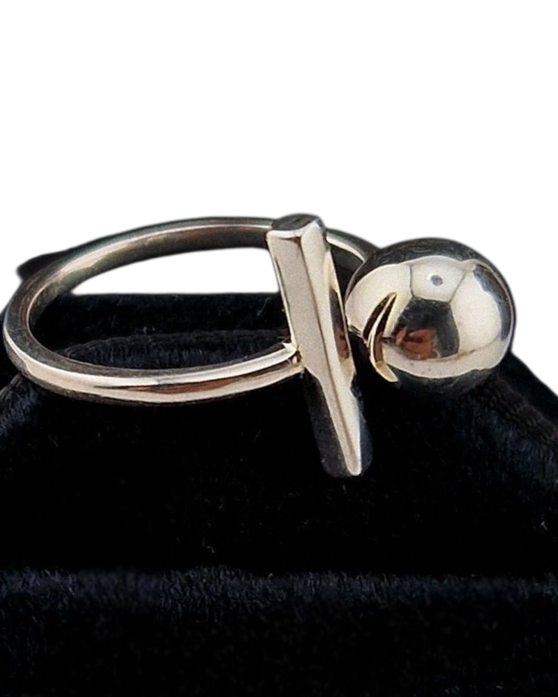 - Design: Open ring featuring a polished sphere and sleek bar accent for a modern minimalist aesthetic