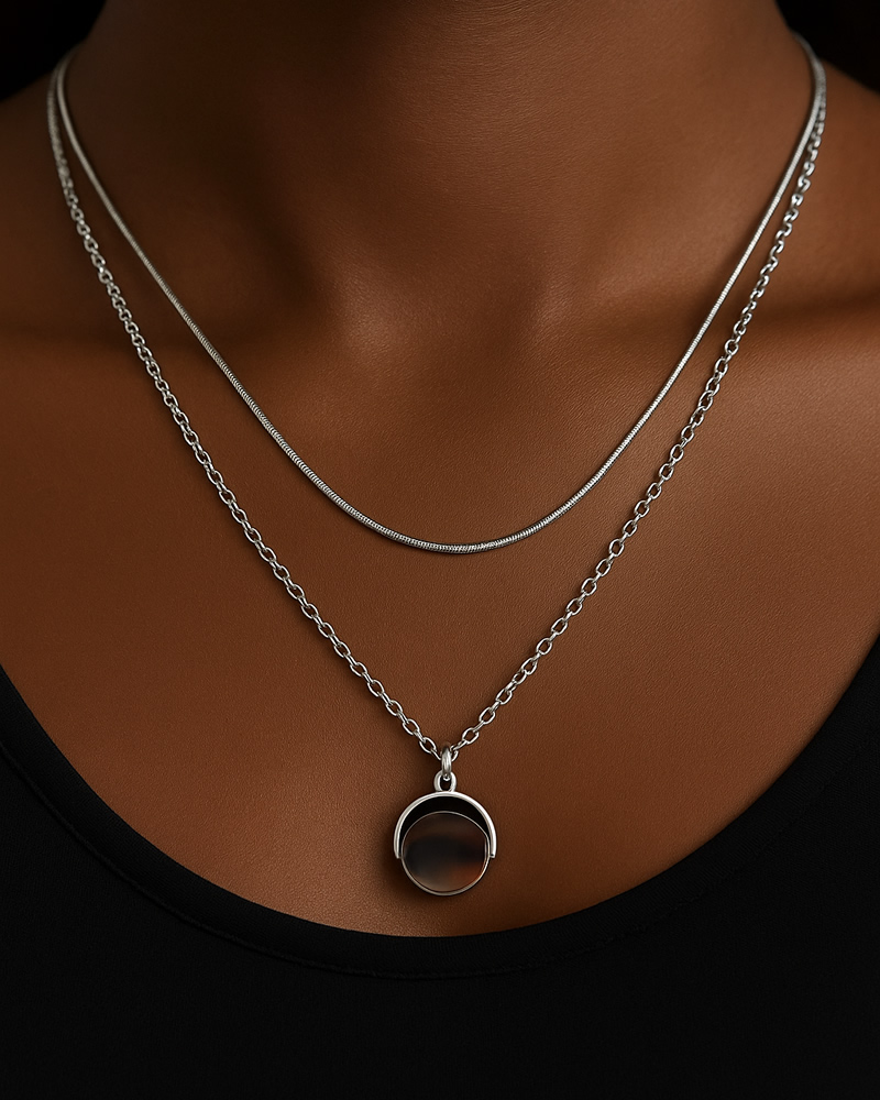 • Chain 2: Pendant necklace with flip-over circular detail