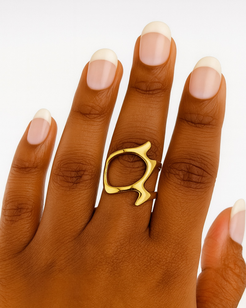 The ORELIA ring blends organic lines with an abstract open form for a bold yet effortless look. Its sculpted silhouette adds a modern edge to any outfit, whether worn solo or stacked with other favorites.