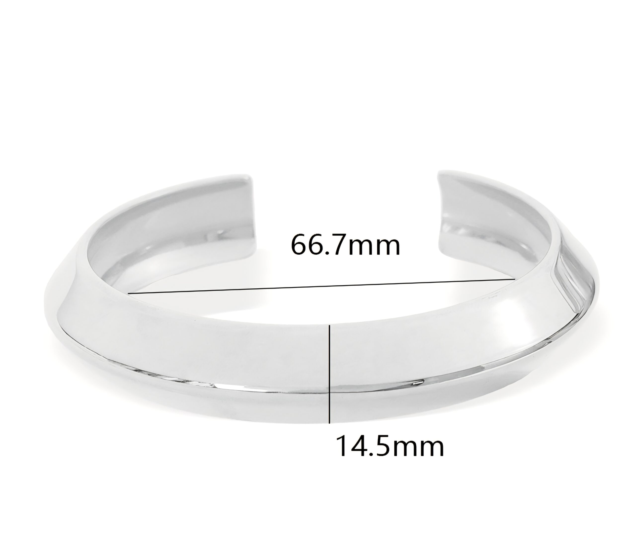 This geometric-inspired bangle bracelet is a bold take on modern minimalism. Crafted from stainless steel with a highly polished silver finish, it offers a sleek mirror-like shine that instantly elevates any look.
