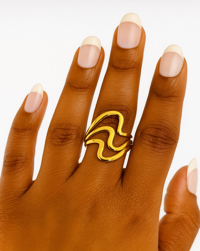 The VIRELLE ring is a standout piece with sculptural curves that wrap softly around your finger. Its organic wave design adds a modern twist to your everyday jewelry, whether worn solo or layered with other rings.
